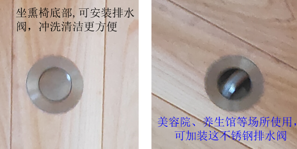 建议经营场所,购买这款坐熏椅时,加配不锈钢底盘和不锈钢排水阀。合计增加成本45元。