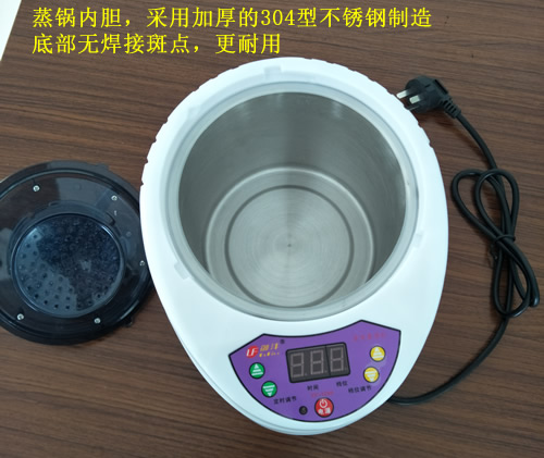 3、 配有高品质的中草药蒸汽熏蒸机(蒸汽锅),该熏蒸机内胆采用加厚的食品级304不锈钢制造,内胆容量2800毫升,而且内置蒸药盒。具有多种加煮中草药方式,做中草药熏蒸极为便利。功率1200W,有9档增减调节,便于随时增减调节出汽量和温度,而且带遥控器,操作便利。