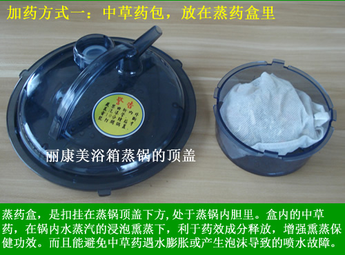 添加中草药包的方式主要有三种:药包直接放入蒸锅水里;药包或中草药材放入蒸锅内的药盒里;药包夹挂在蒸锅盖子下面。